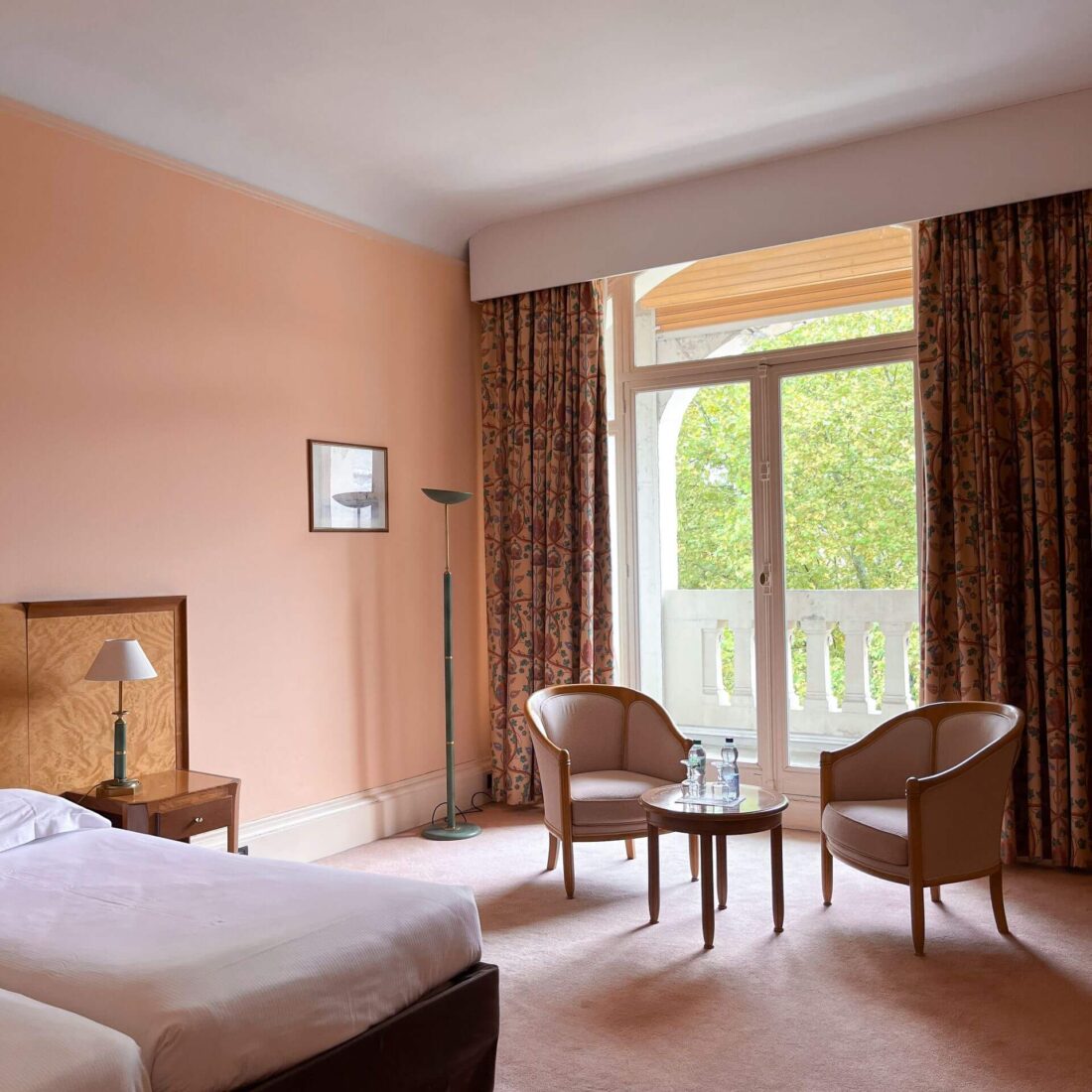 Le décor allie un grand raffinement traditionnel au confort le plus contemporain. Murs, rideaux et dessus de lit offrent des coloris en camaïeu, bois de rose, bleu ou vert tendre.